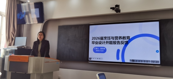 为积极响应学校质评办对专业毕业设计工作的抽查反馈意见,切实提升本专业毕业设计质量,强化过程管理,12月8日烹饪与营养教育专业在隆德楼505召开了毕业设计开题报告问题集中反馈会。会议由专业负责人段文佳老师主持,食品营养与健康学科带头人王文琪教授、全体毕业设计指导教师及2026届烹饪与营养教育专业毕业生参会。