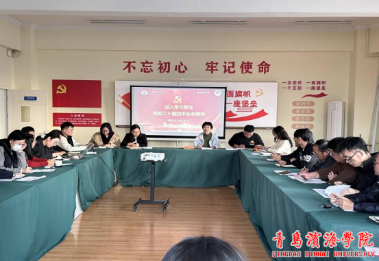 2025年10月27日,酒店管理学院在隆德楼四楼会议室召开专题学习会,组织全体教师集中学习党的二十届四中全会精神。王同娟院长主持会议。