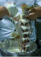 作为鲁菜标杆,糖醋黄河鲤鱼的刀工、火候、调味皆有讲究,恰是实训的重点。同学们牢记要领,水池边仔细处理鱼身,菜刀起落间,均匀花刀已成型;调料区里,精准称量糖、醋、酱油,把控酸甜平衡的关键。油炸环节最是考验功力。七成热油中,挂糊的鲤鱼缓缓入锅,同学们轻托鱼腹,让热油浸润每一处花刀。待鱼身金黄酥脆捞出,浇上刚熬好的浓稠糖醋汁,“哗”的声响中,香气四溢,鱼身如金龙披彩,格外诱人。